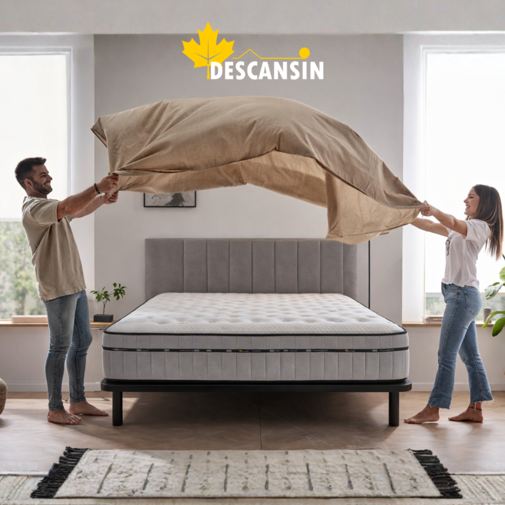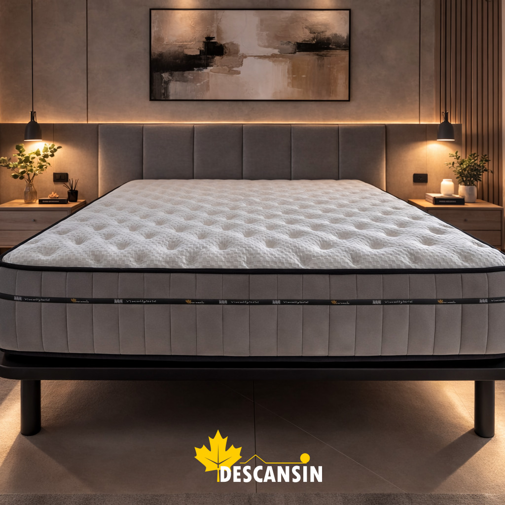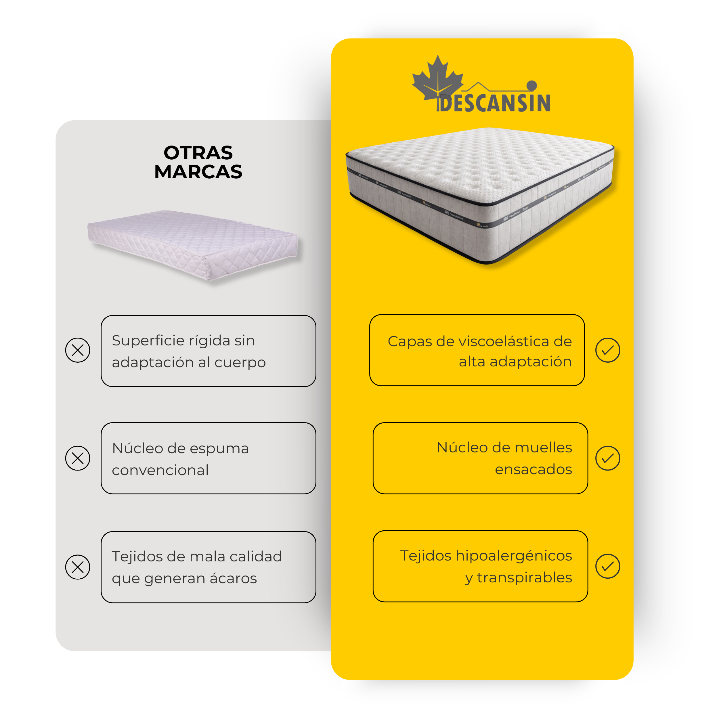 - Descanso Ergonómico Con Firmeza Media: El colchón Descansin combina tecnología de colchon viscoelastico y muelles ensacados para ofrecer un colchón firmeza media que mantiene la columna alineada durante toda la noche.